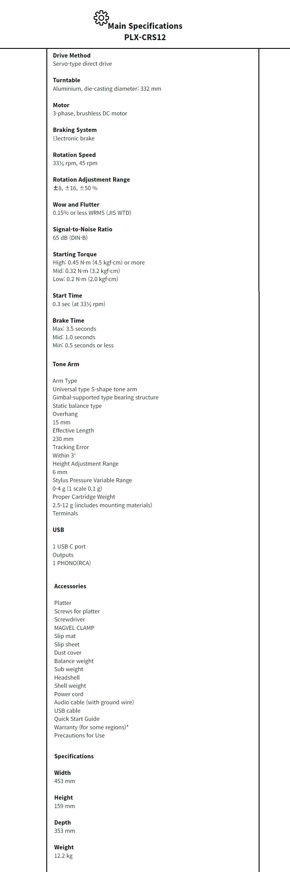 PLX-CRSS12는 무광 블랙 색상으로 톤 암 및 기타 금속 부품에